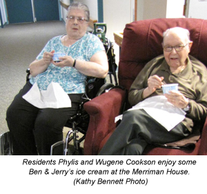 CONWAY — Continuing the spirit of community giving encouraged under the late Dick Badger, real estate agents and staff at Badger Realty and staff from Bank of New Hampshire spent a recent Monday afternoon visiting the Merriman House and sharing ice cream and a warm smile with residents and their families.